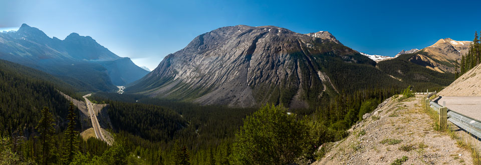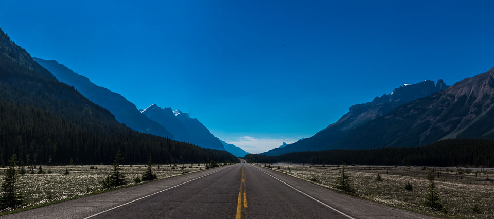 The Icefields Parkway is an incredibly scenic road in Canadian Rockies. It parallels the Continental Divide. Traversing the rugged landscape of the Bow, Saskatchewan and Athabasca river valleys while travelling through Banff National Park and Jasper National Park. It links Lake Louise with Jasper to the north.