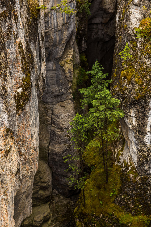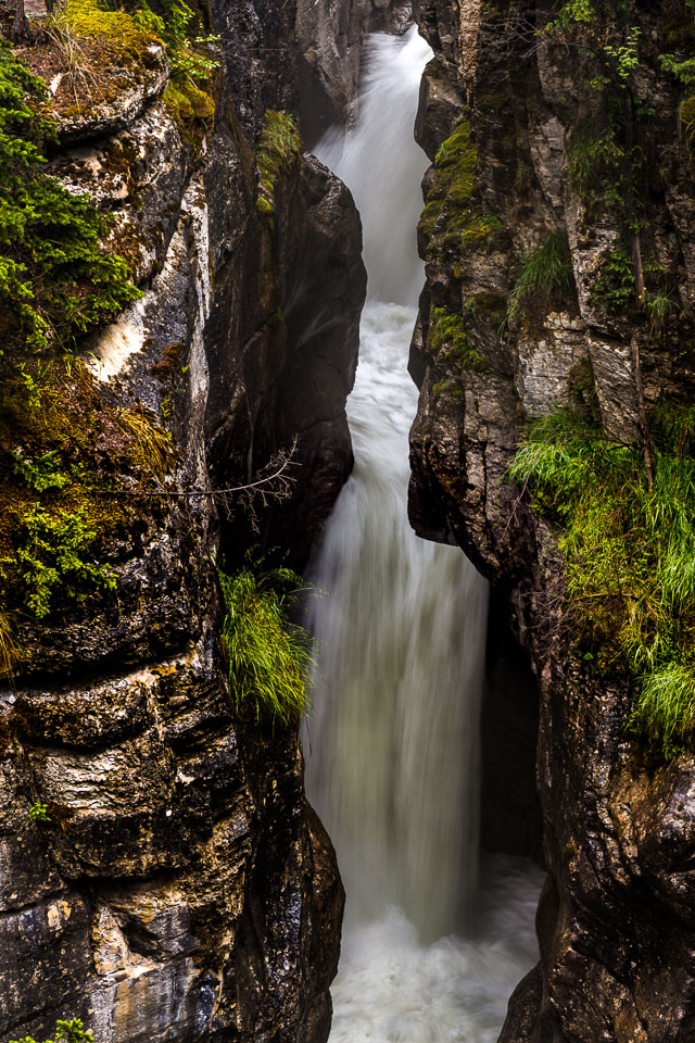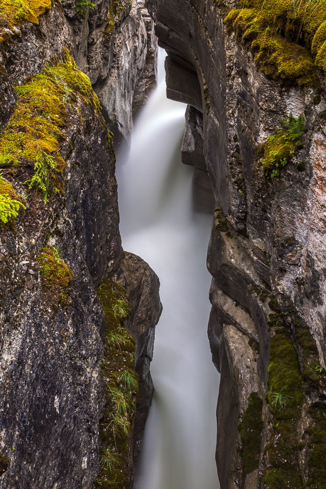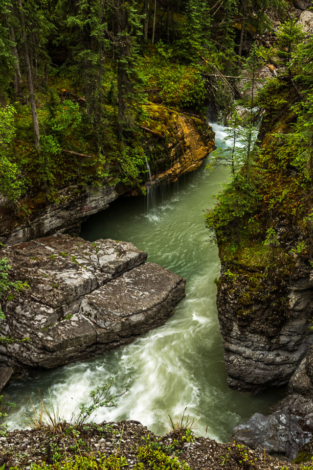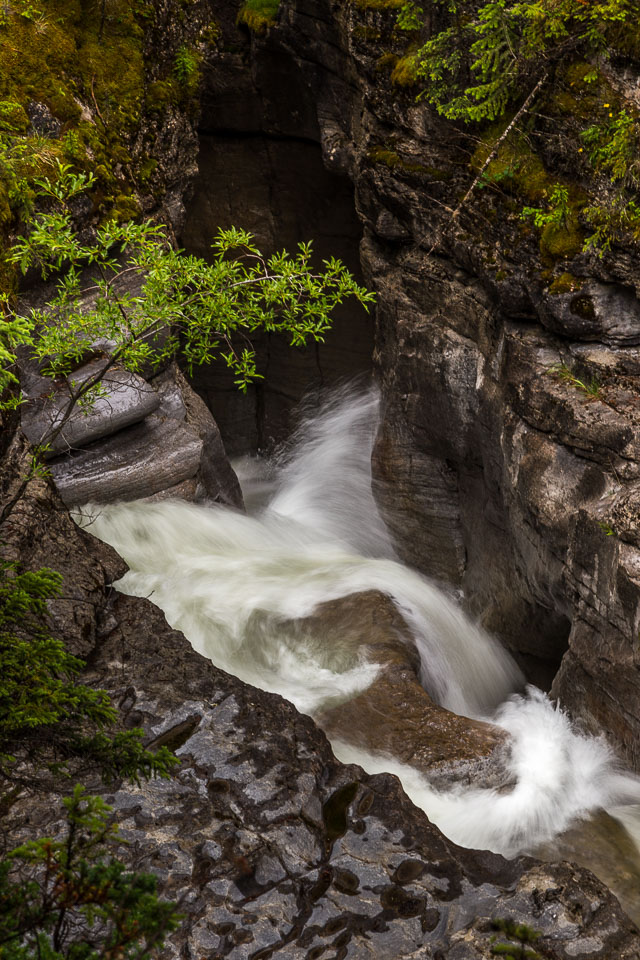 The Maligne River ('maligne' is french for 'malignant' due to the difficulty of crossing) has carved itself the deepest slot canyon in the Canadian Rockies.