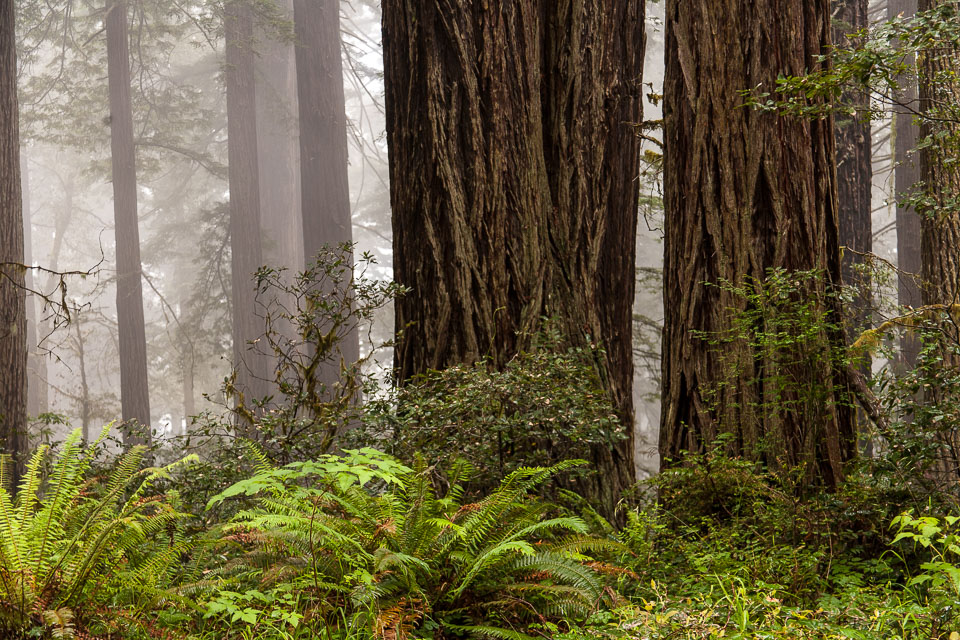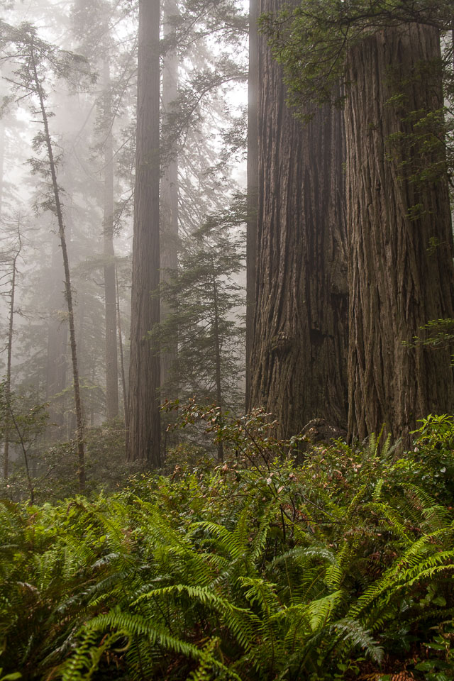 Redwoods in the mist, Redwoods National Park. Taken on June 25, 2012. Filename: 20120625-IMG_5186
