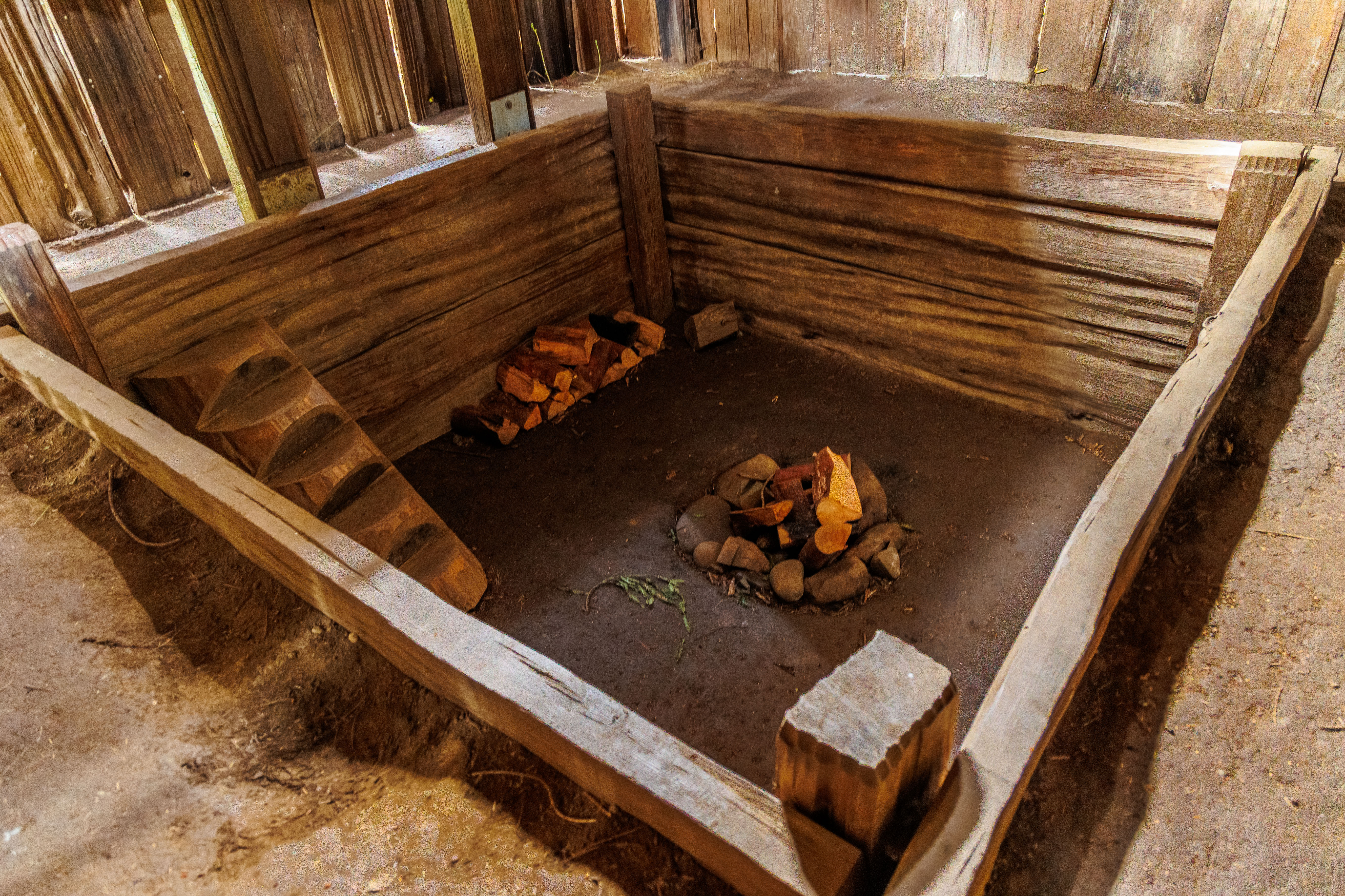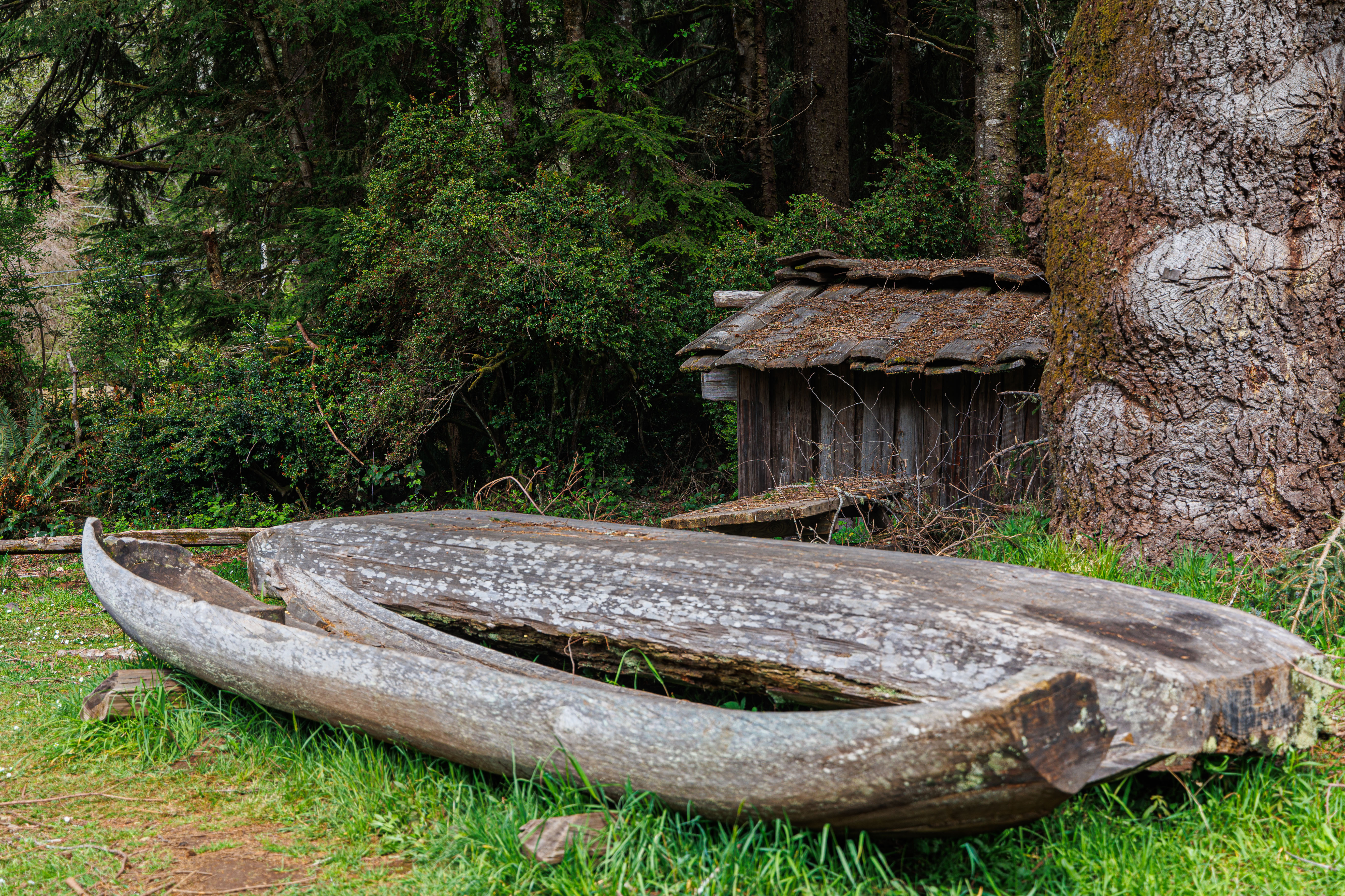 The park contains a a recreated Yurok Village. The Sumêg Village features traditional Yurok family houses, a sweathouse, changing houses, a redwood canoe, and a dance house. The village is used by local Yuroks for education of their youth and sharing their culture with park visitors. Yearly celebrations are held, and many school groups visit the village when studying California history.