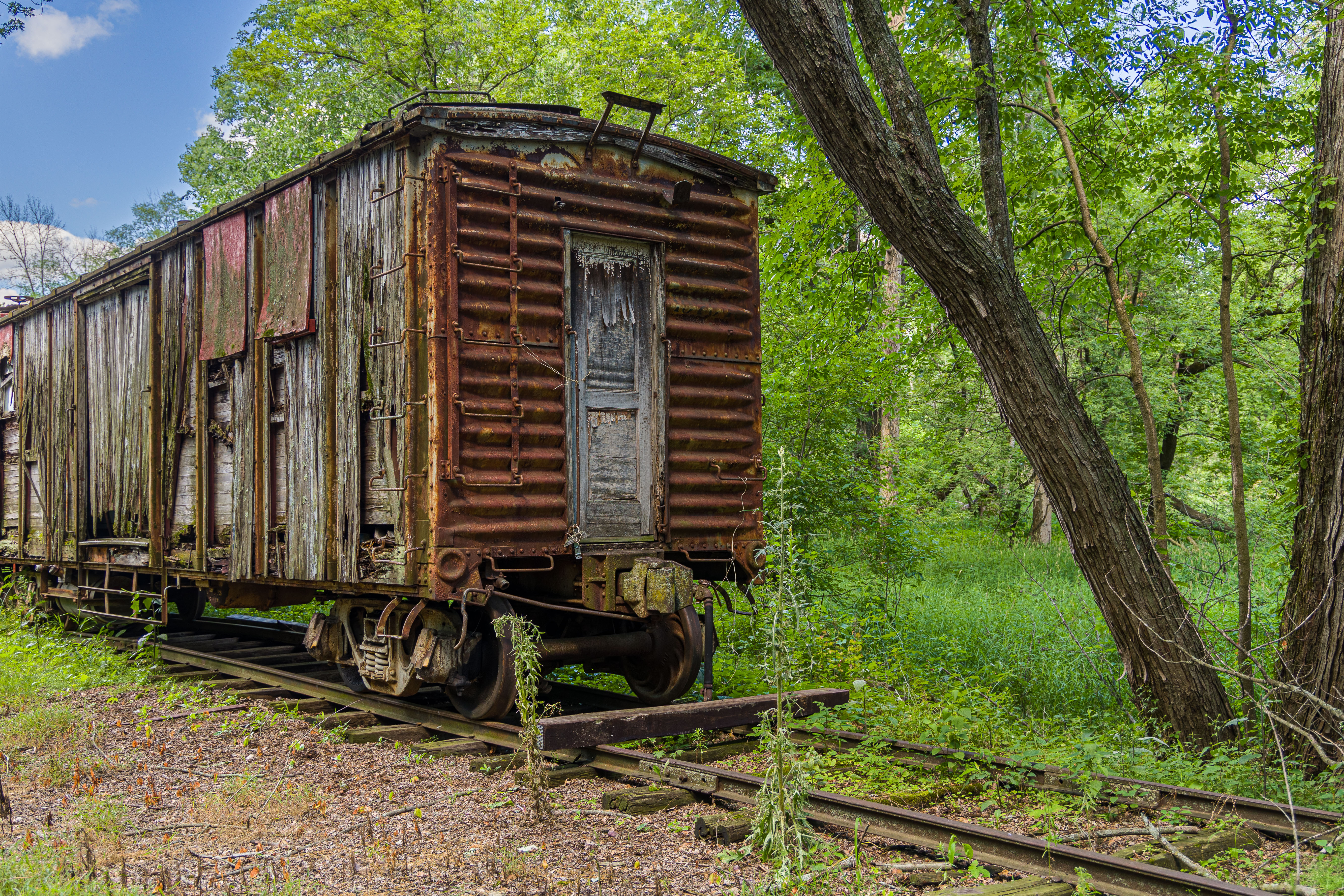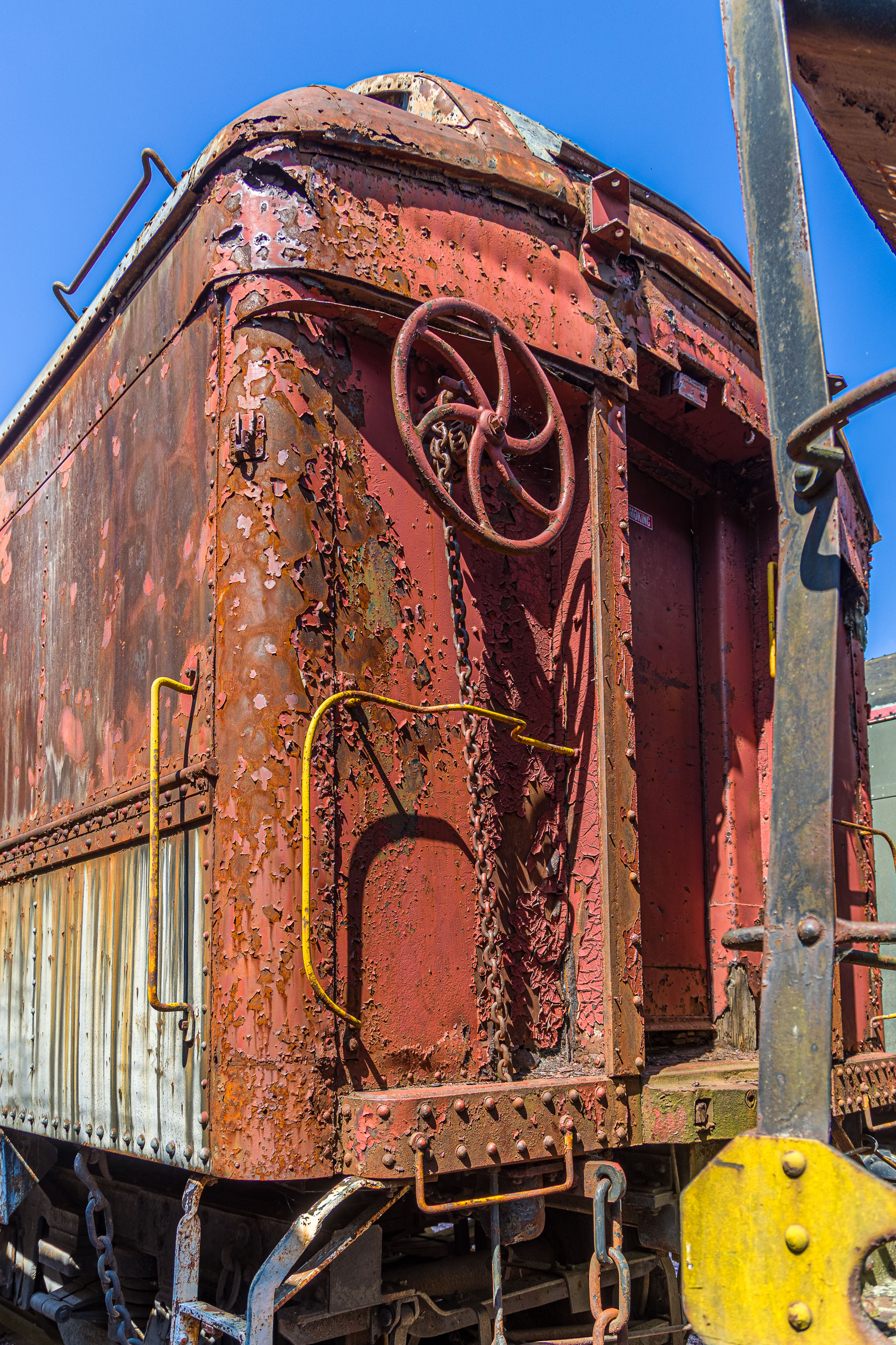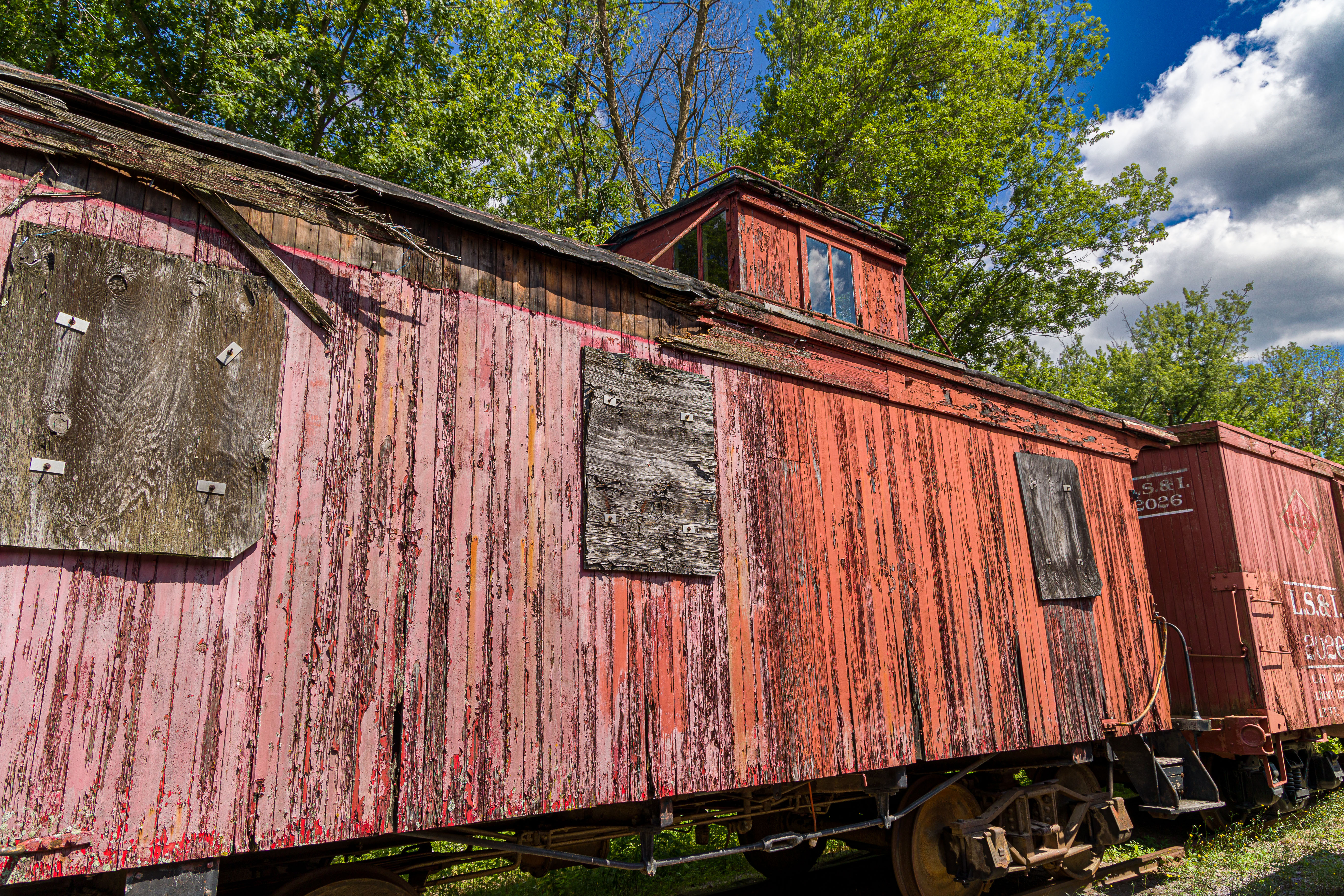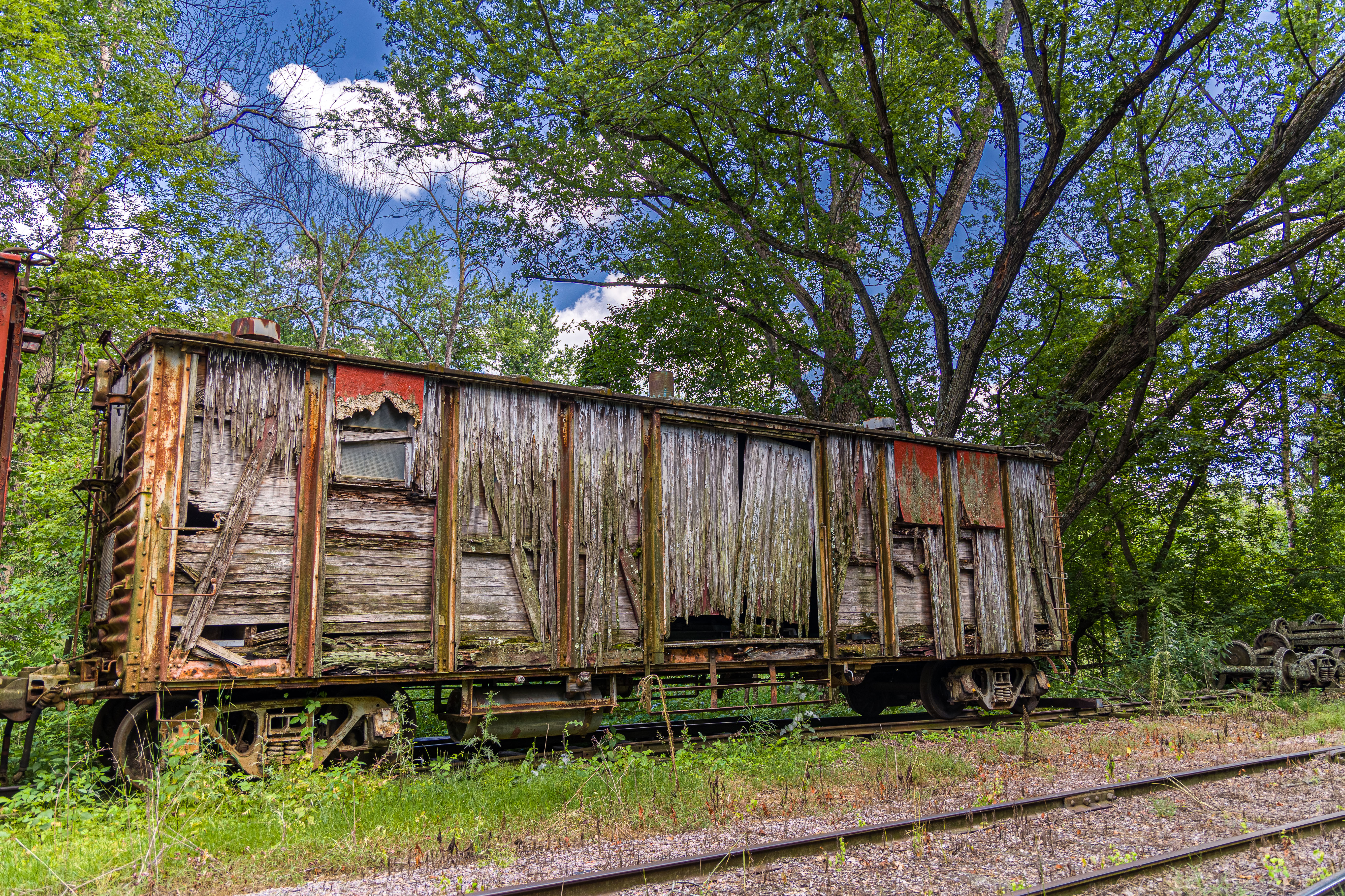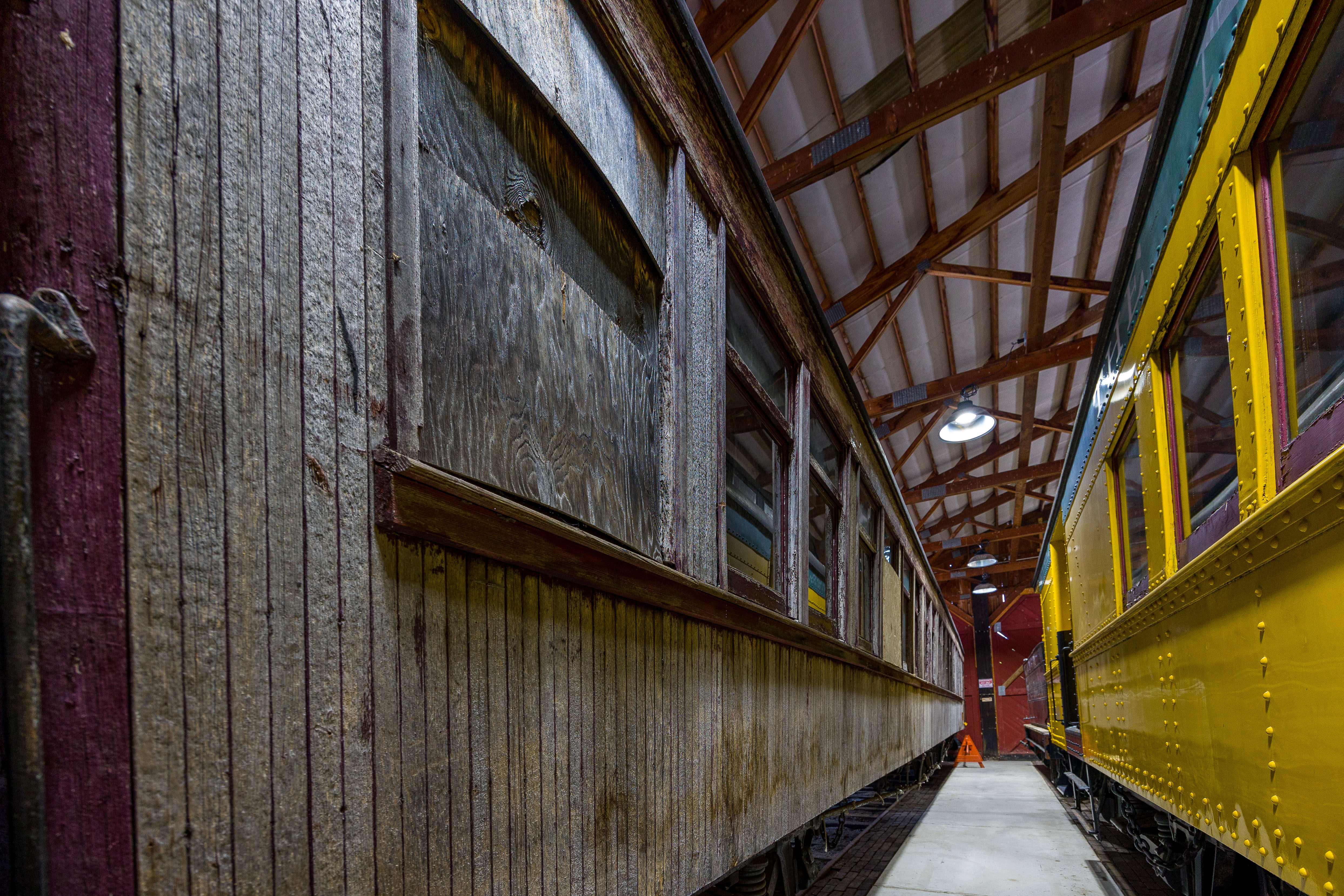 The Mid-Continent Railway Museum's collection emphasizes the preservation of railroad items operated in the upper Midwest from the period of 1880–1916, what the organization refers to as the "Golden Age of Railroading" The museum has 13 steam and 7 diesel locomotives and over 100 other pieces of rolling stock. The museum has the largest collection of wooden passenger cars in the United States as well as being home to five of only six surviving wooden boxcars built by the Mather Stock Car Company and the nation's last surviving fish car, Wisconsin Fish Commission "Badger Car #2" Many of these shots are from wandering around "the boneyard" of decommissioned engines and rolling stock in various states of disrepair and salvage.